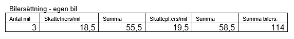 Bilen kostar mer än så, samtidigt som bränslepriserna har ökat, därför har vi på AA Logistik bestämt att höja den skattepliktiga delen till 19,50 konor per körd tjänstemil (från tidigare 6,50 kronor).