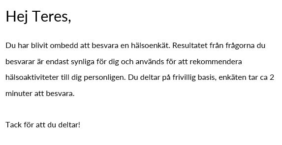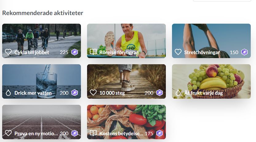 När du sedan gjort undersökningen så får du personligt rekommenderade aktiviteter, dessa ger extra poäng när du gör dem!